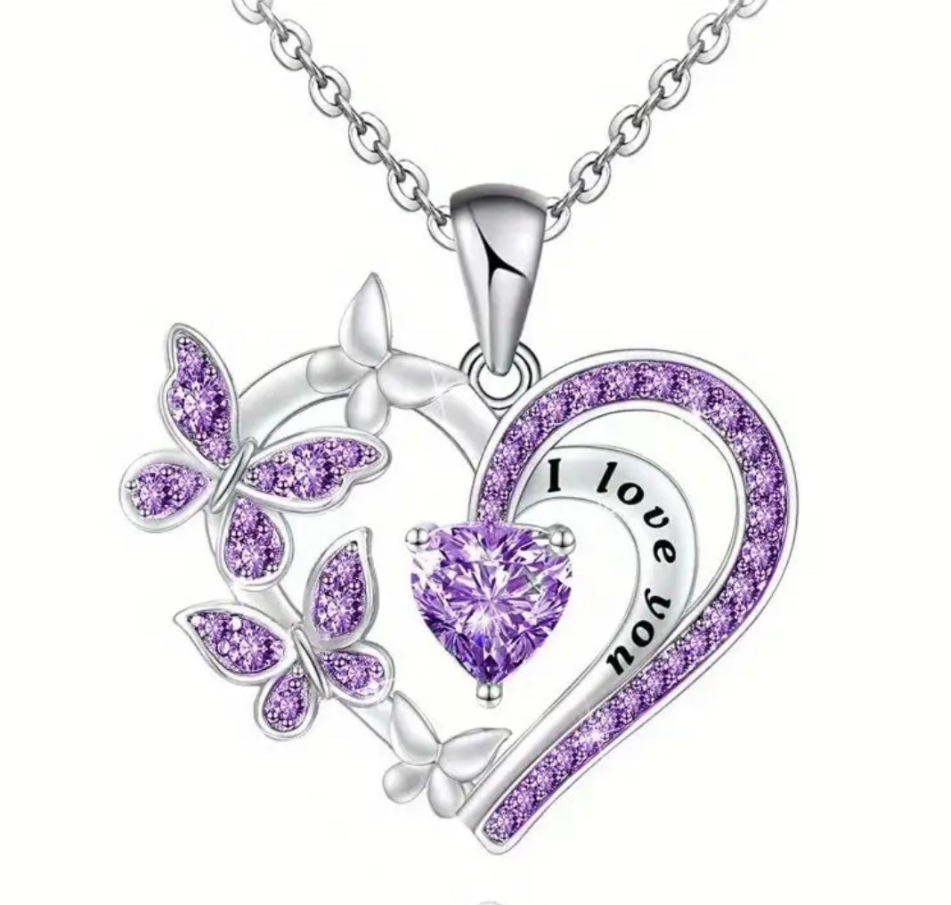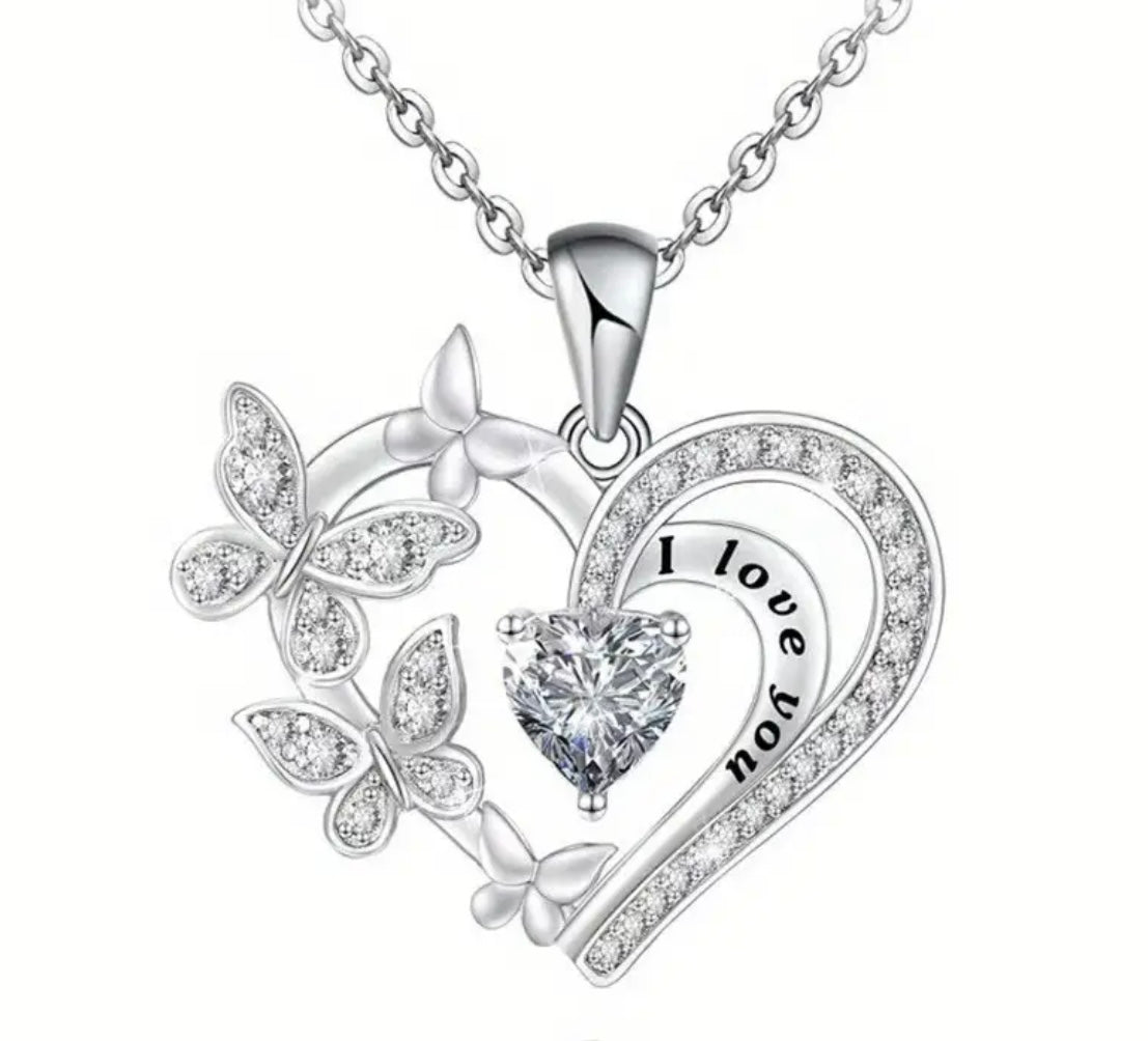 1 pc Shiny Butterfly Decor Heart Shaped Pendant for Women