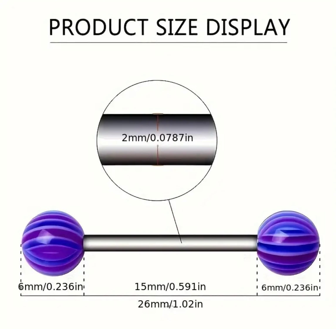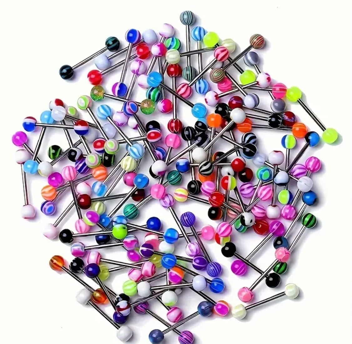 100 Total Pieces Stylish Tongue Rings Stainless Steel Barbells