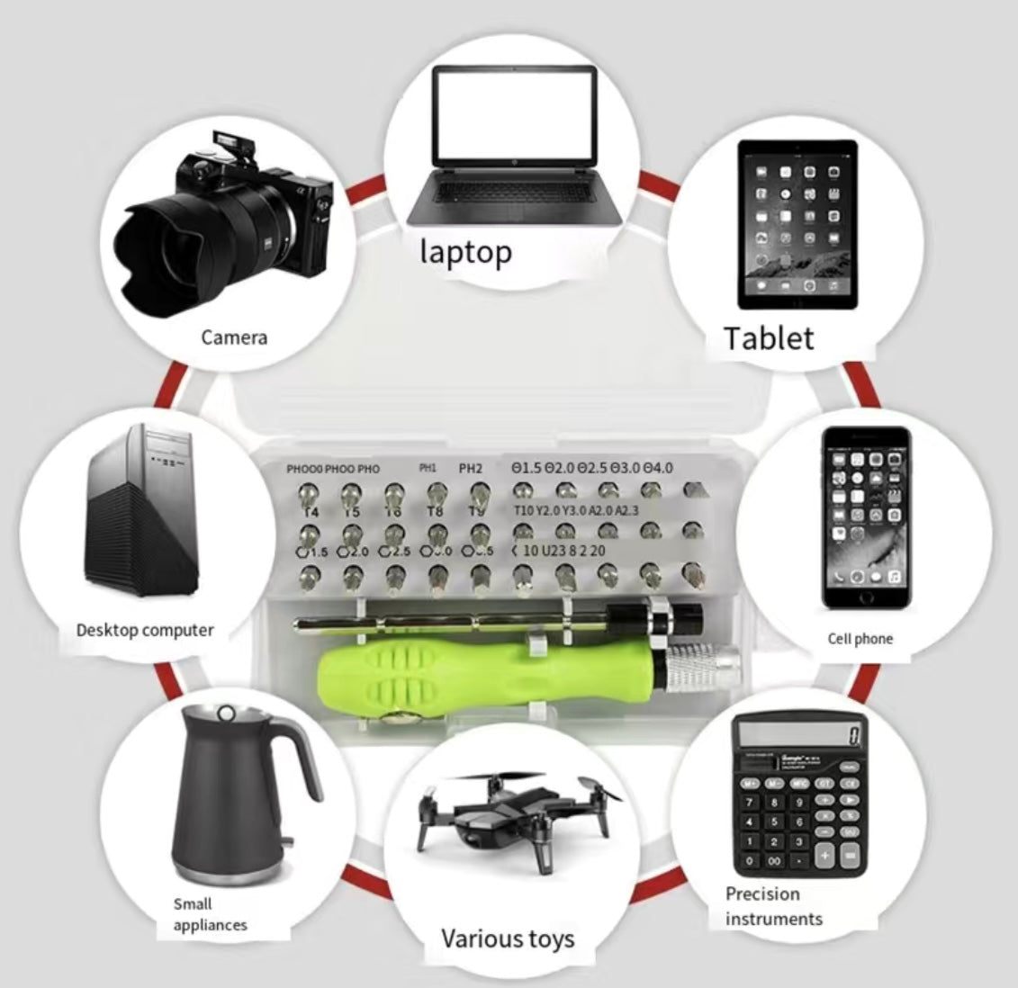 32-in-1 Screwdriver set with magnetic handle and mini ratchet tool