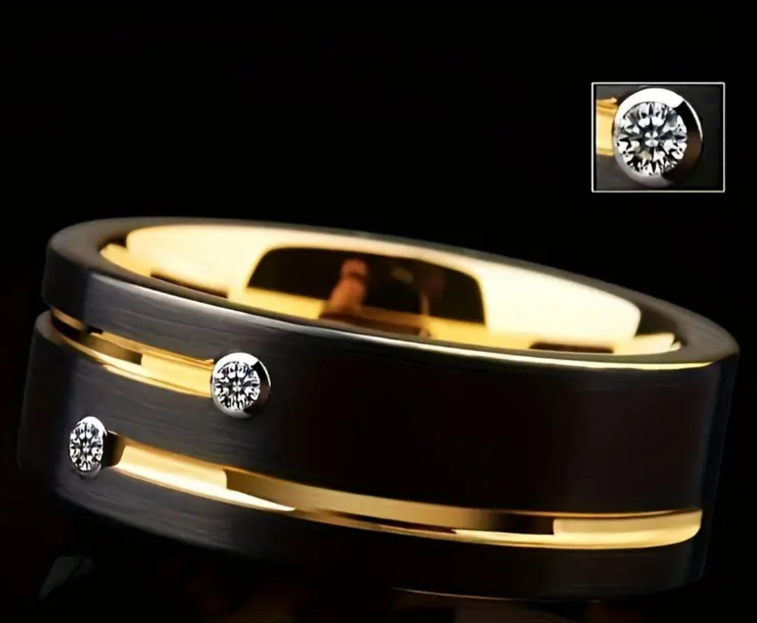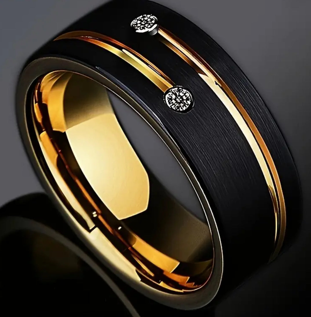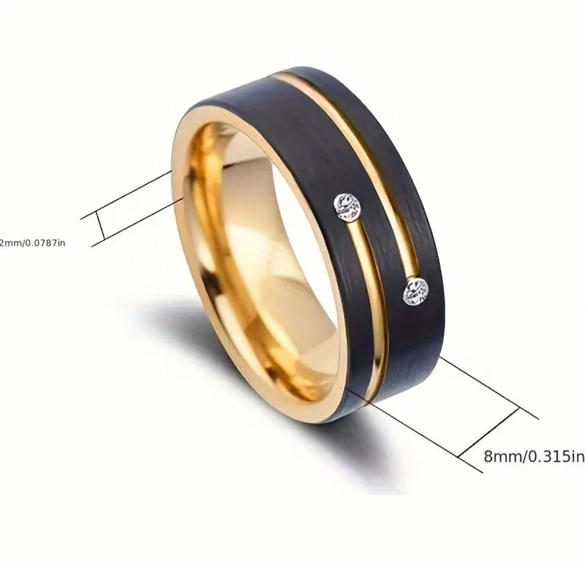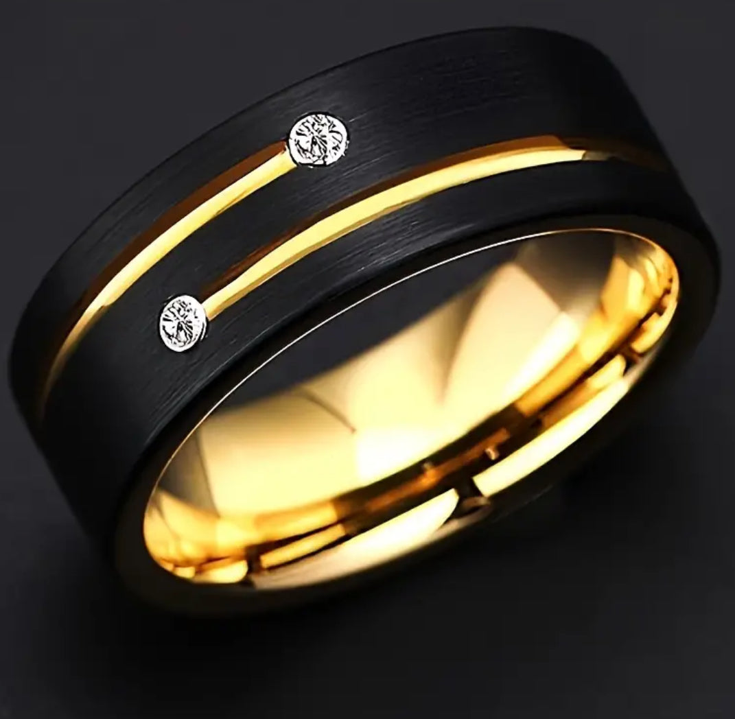 8mm Black Gold Plated Stainless Steel Luxury Ring Size 7