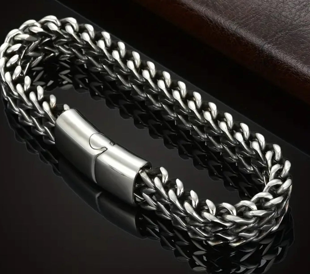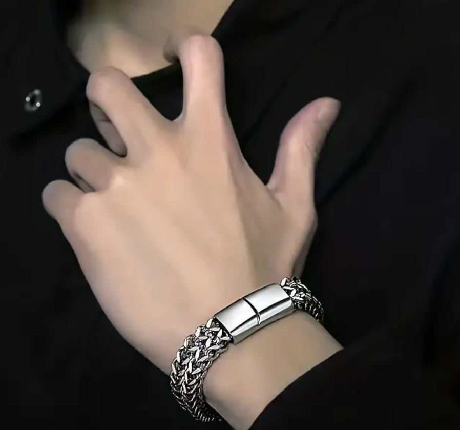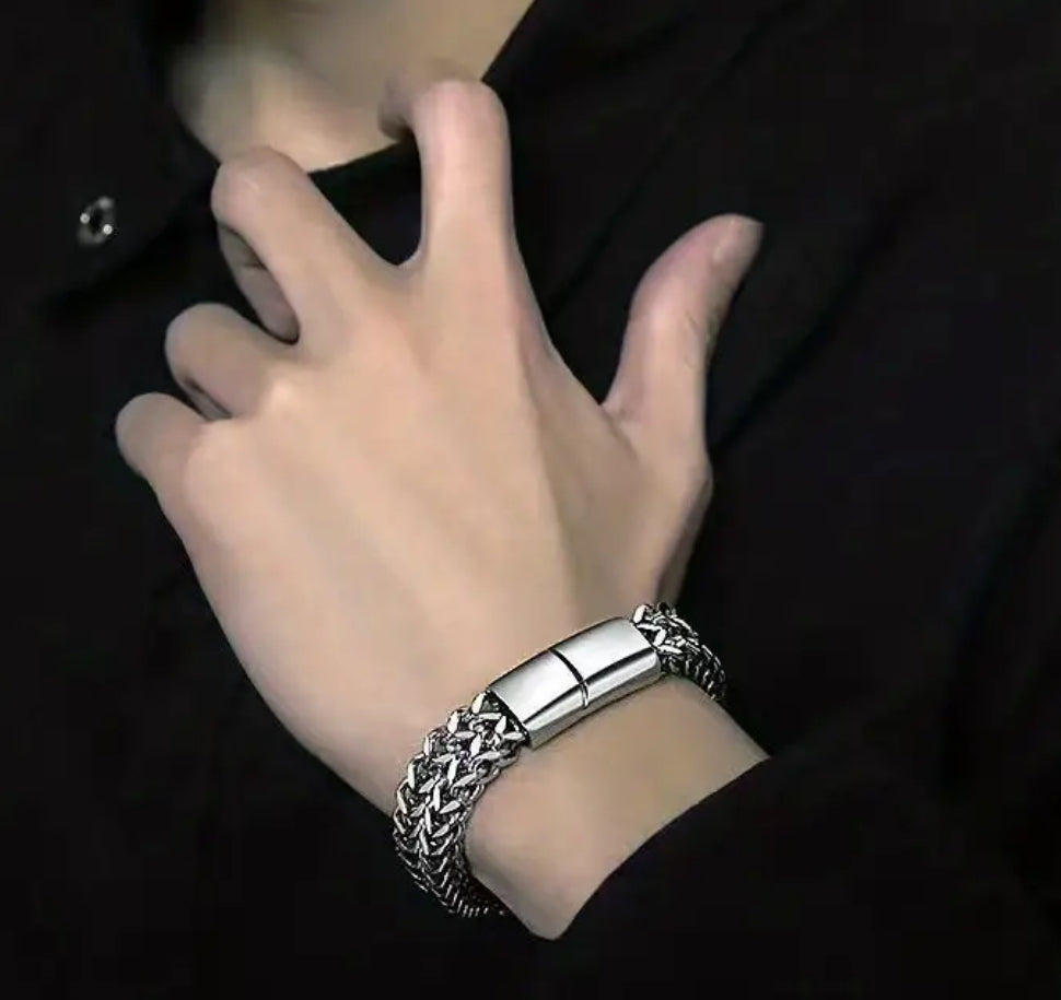 Premium Stainless Steel Men’s Braided Chain Bracelet Stylish Square Links With Magnet Buckle Closure