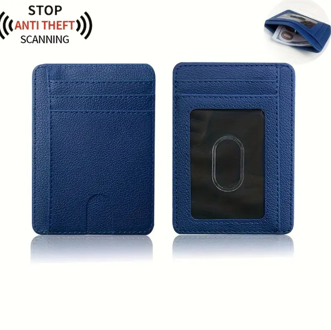 Blue Simple RFID Blocking Card Holder Portable Pu Leather Card Holder RFID Theft Protection Perfect Gift