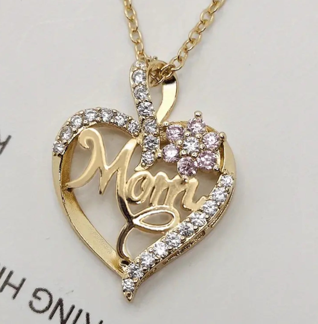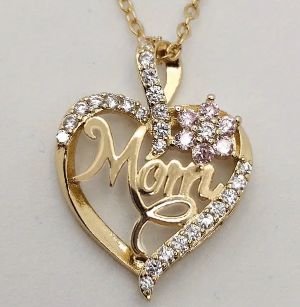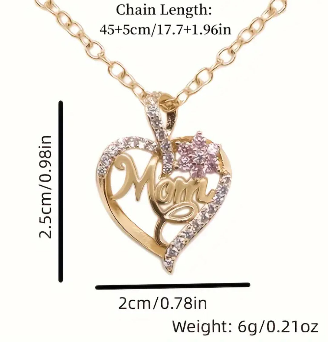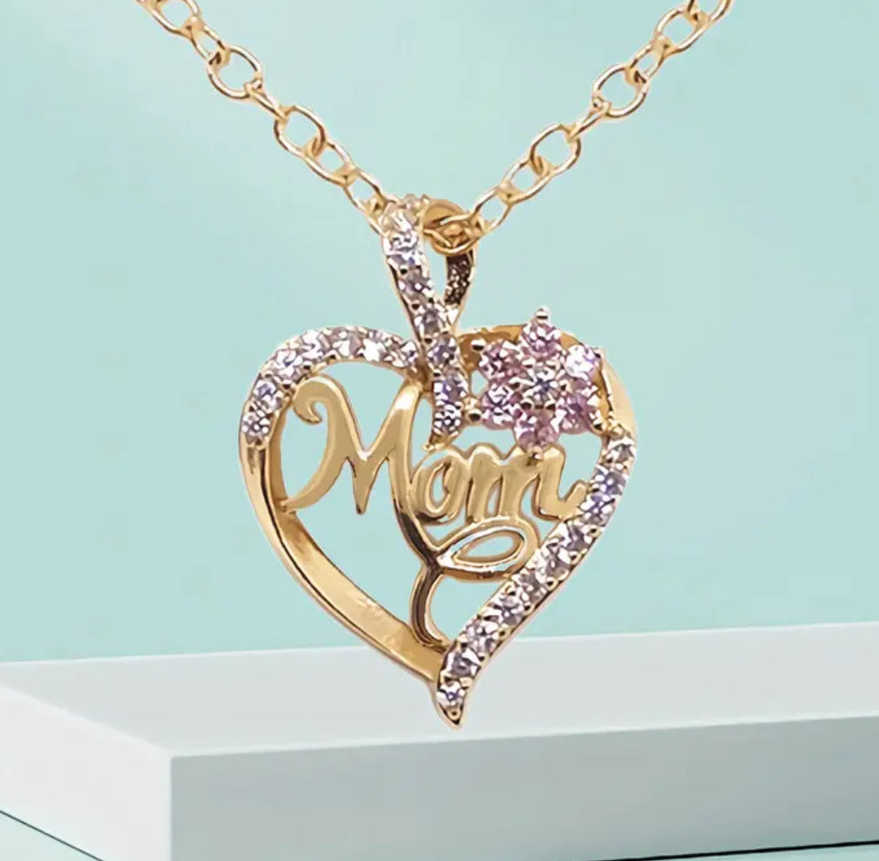 Stylish Heart Flower MOM Pendant Necklace Symbol of Love Great Gift