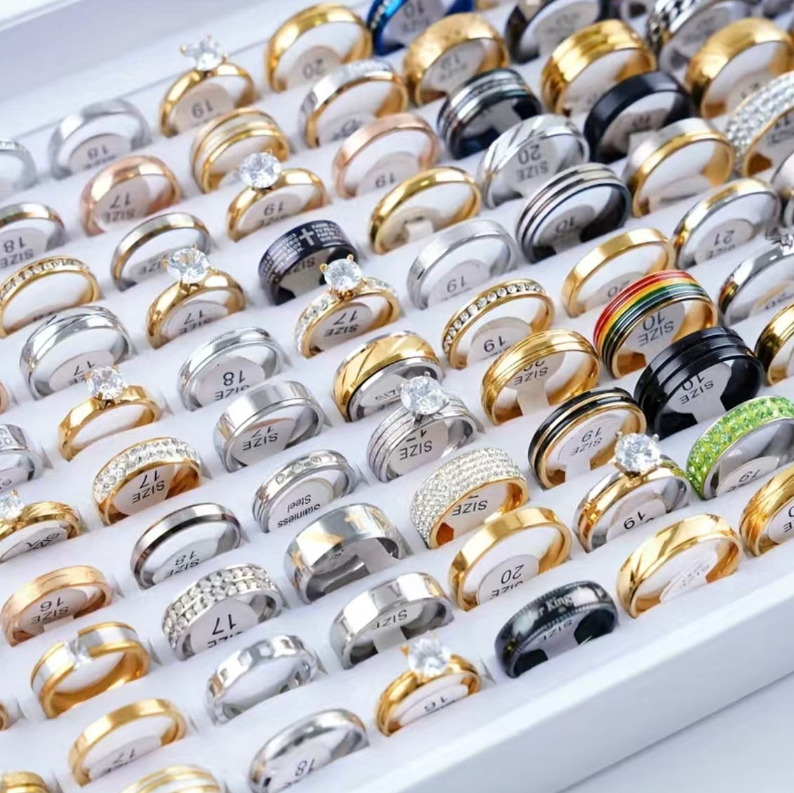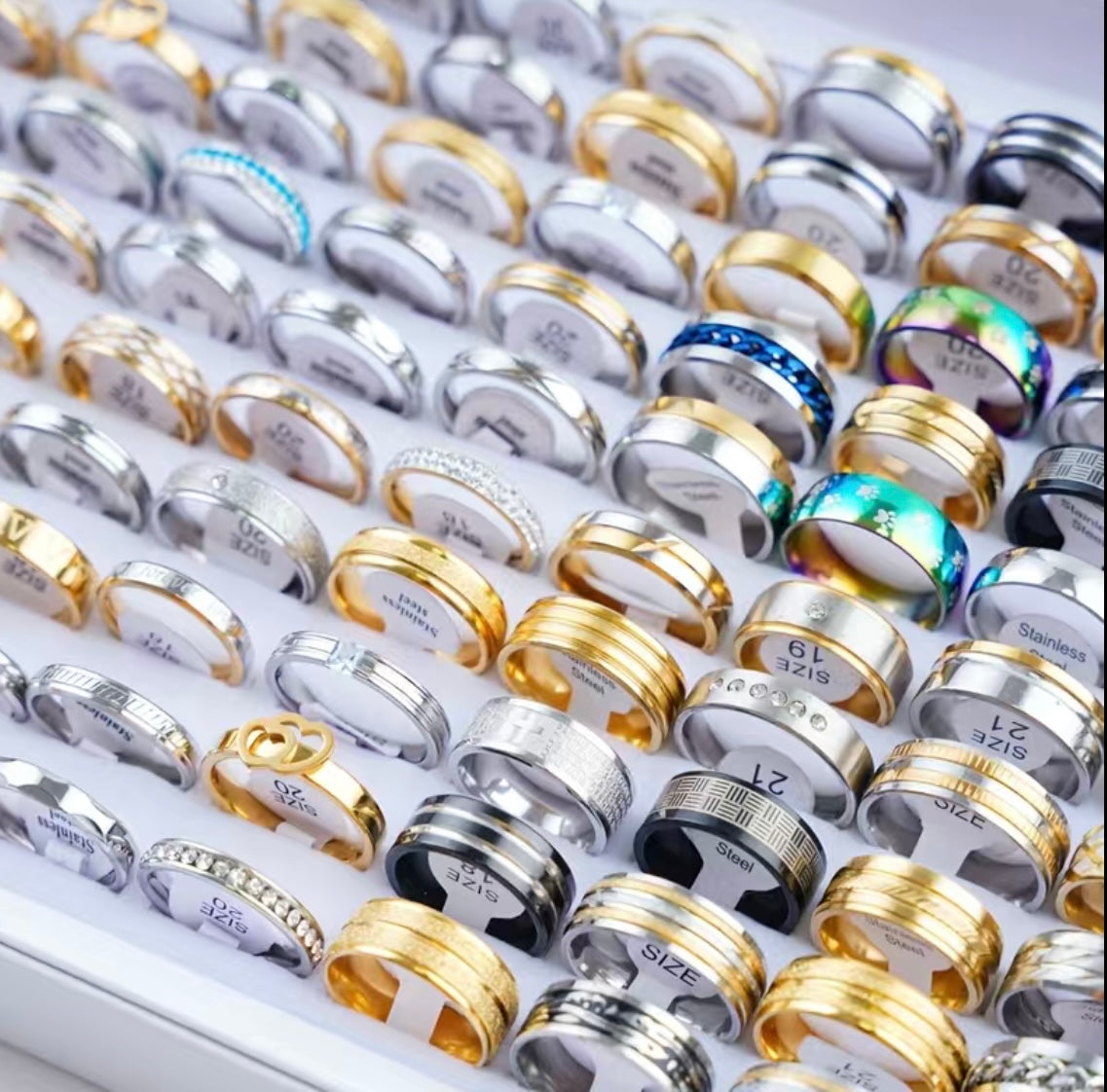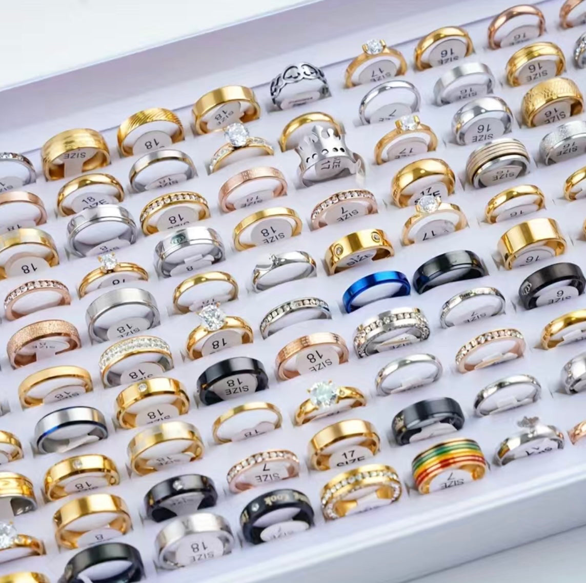 5 Random Rings / random sizes (unless you text customer service your size preferences before the order is shipped, just simply include your order # in the text!)