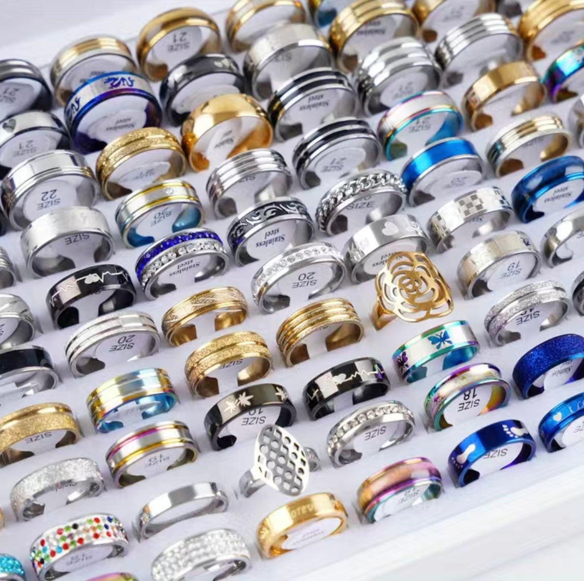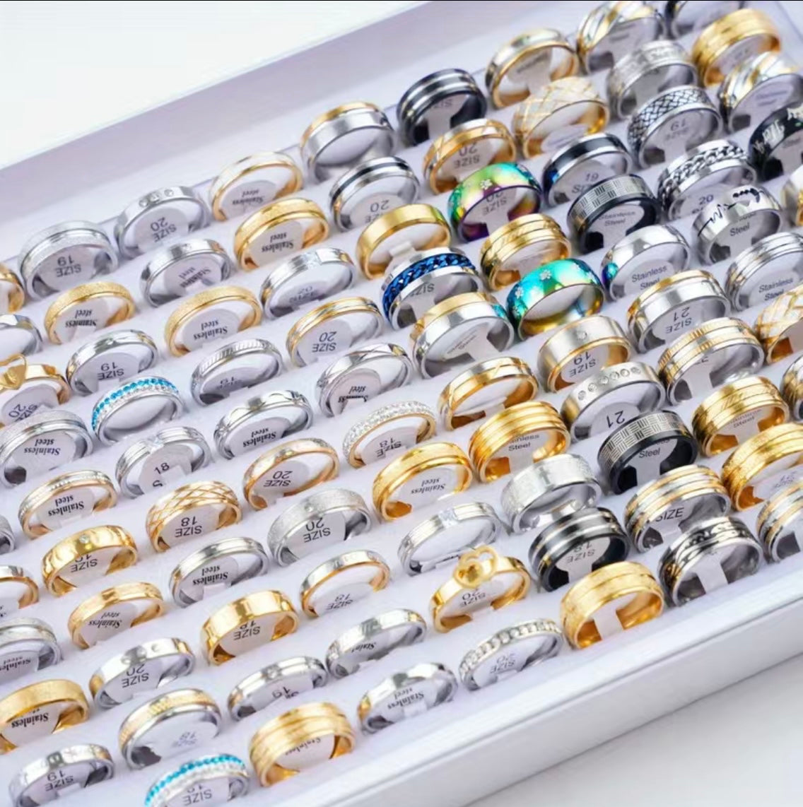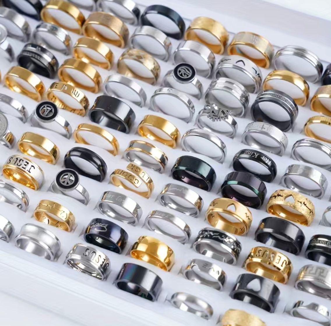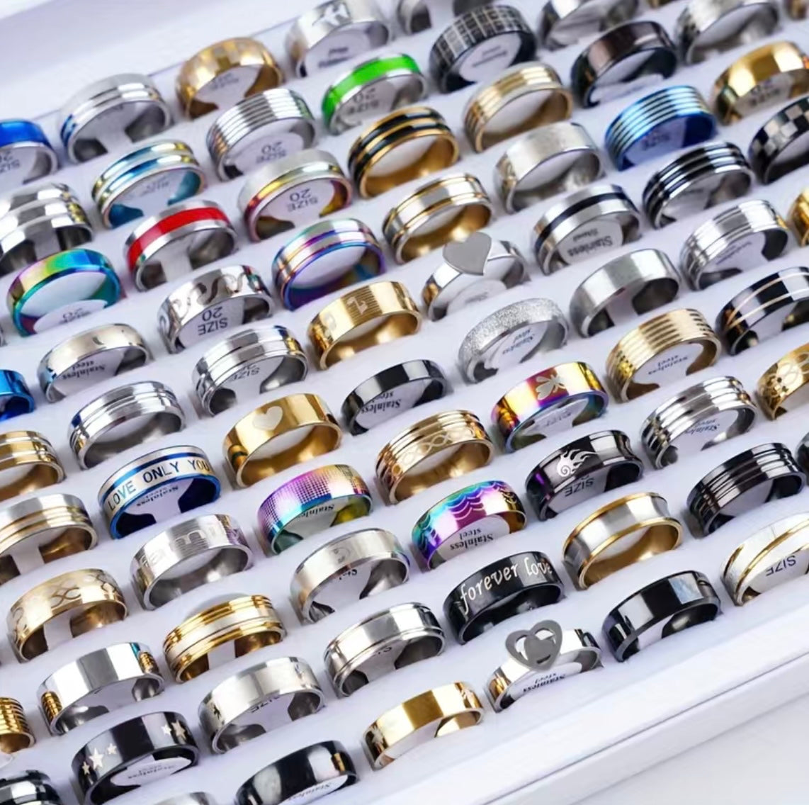 5 Random Rings / random sizes (unless you text customer service your size preferences before the order is shipped, just simply include your order # in the text!)